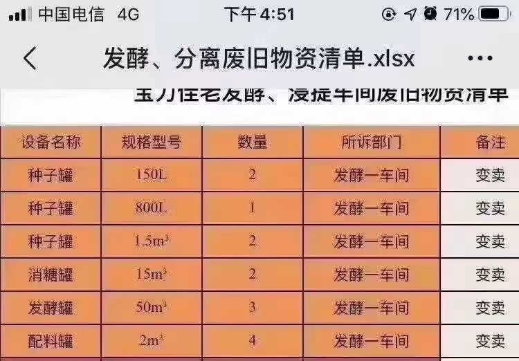 50立方發(fā)酵罐4台,15立方發(fā)酵罐2台,1.5立方發(fā)酵罐2台,資料齊全,安裝未用,需要的聯系